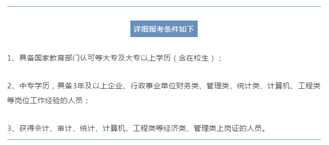 2、中專學歷,具備3年及以上企業、行政事業單位財務類、管理類、統計類、計算機、工程類等崗位工作經驗的人員;