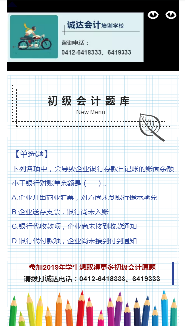 1、初級會計【晚班】(每周1,3,5每周三天)