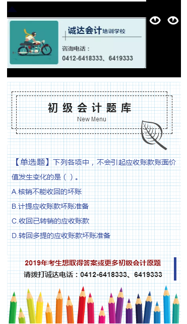 1、初級會計【晚班】(每周1,3,5每周三天)