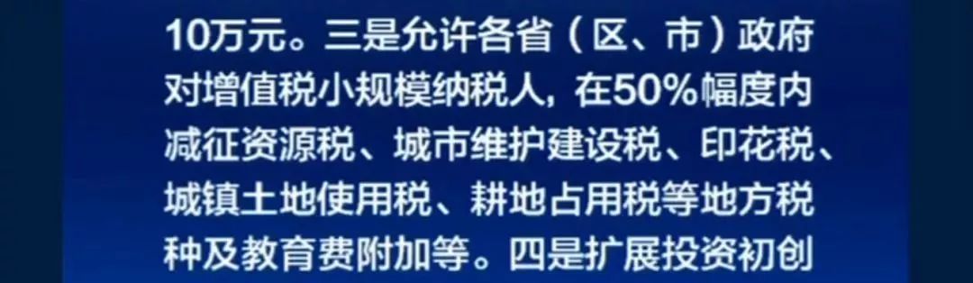 3. 允許各省(區、市)政府對增值稅小規模納稅人,在50%幅度內減征資源稅、城市維護建設稅、印花稅、城鎮土地使用稅、耕地占用稅等地方稅種及教育費附加、地方教育附加。