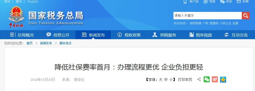 “在全國稅務(wù)系統(tǒng)共同努力下,在各地人社、醫(yī)保等部門大力支持下,降低社保費率新政在各地順利落地,開局良好。”國家稅務(wù)總局社保費一組組長鄭文敏說。