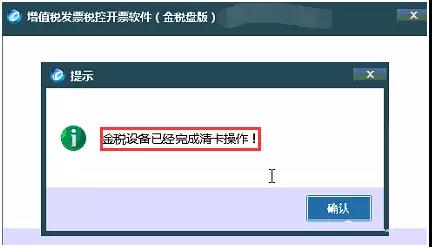 第三步:申報(bào)完成后重新進(jìn)入開票軟件提示“金稅設(shè)備已完成清卡操作”