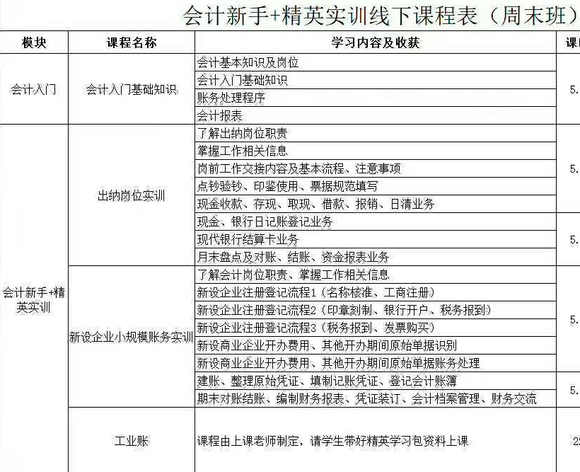 1、初級會計【晚班】(每周1,3,5每周三天)