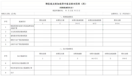 1、增值稅附加稅申報表附列資料(四)——稅額抵減情況表