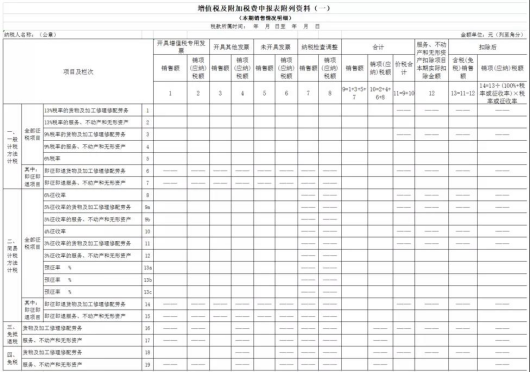 此項適用于大部分一般納稅人,申報當期銷售情況,第一種全部征稅項目,常見的商貿企業,服務行業需根據稅務核定稅率填報此表1至4欄次,如企業是一般計稅但符合即征即退的行業,簡單地說是稅務機關把稅款先征收了,隨后再全部或部分返還給納稅人。