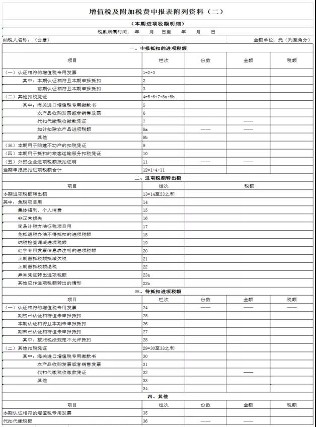 3、增值稅及附加稅費申報表附列資料(二)——本期進項稅額明細