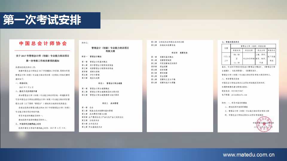答:你上百度搜索“初級管理會計師”就能找到了,官方辦公室也有具體的招生簡章,報名須知和考試大綱都有。中總協官網也有招生簡章的。